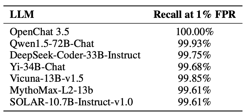 These new releases are similar to previous versions released by OpenAI. So the next question we ask is - how do we do on completely different model families? To answer this, we evaluated our model on a bunch of open source models that our classifier has never seen before.